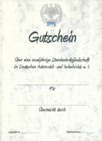 für Inland. Die Geschenkurkunde kann bei der Clubverwaltung unter